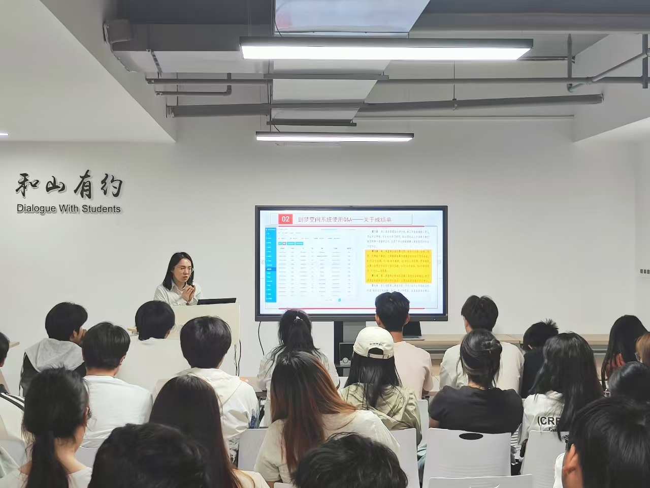 新闻网讯(文/郑丽琼 图/张云 岳鑫宇)为切实发挥学校“第二课堂成绩单”制度在思想引领和实践育人方面的作用,帮助学生熟练掌握第二课堂成绩单系统——“到梦空间”相关操作流程,4月23日至24日,校团委在一站式学生综合服务中心111室分别开展两期“第二课堂成绩单”制度及“到梦空间”系统培训交流会。培训会由校团委社团管理科郑丽琼老师主持,来自建筑工程学院和智能工程学院一百余名分团委学生干部、班团干部参加培训。