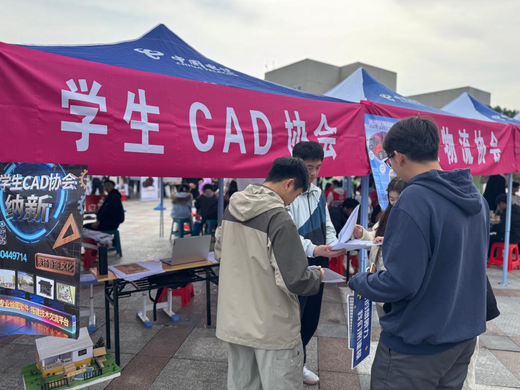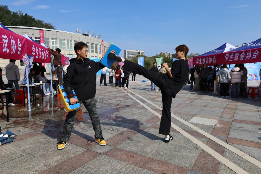 纳新活动中,社团紧密围绕自身特点各出奇招,宣讲介绍、成果展示、现场教学、沉浸式体验等纳新形式创新多元,亮点迭出,精彩频现。红十字志愿服务队的成员们热情地解答着关于志愿服务、无偿献血、应急救护培训等问题,分享他们在参加志愿活动中的成长和收获,吸引了一批心怀热忱、志在奉献的新生力量加入;学生CAD协会的展台别具一格,展示了由学生自主设计制作的精美建筑模型,每一个细节都体现了设计者的巧思与扎实的专业技能,激发了众多新生的浓厚兴趣;学生酒店协会展位香气四溢,早早排起了长队,同学们制作酥脆可口的蛋挞和温暖香甜的热饮,供来往师生免费品尝,这不仅是一次味蕾的享受,更是一次专业的展示,让新生们在甜蜜中感受到酒店管理专业的魅力与实操乐趣;学生尚武协会的成员带来刚柔并济的武术表演,一招一式虎虎生风,展现了中华武术的博大精深,赢得了阵阵喝彩;学生自由者轮滑协会的成员们如风般穿梭,灵动的身影与矫健的身姿,将速度与技巧完美结合,吸引了大量同学驻足观看、亲身体验轮滑的乐趣;当天一乐团展位前动人的旋律响起,学生们便不约而同地涌向表演区,主唱与乐手之间默契的互动引发阵阵欢呼。