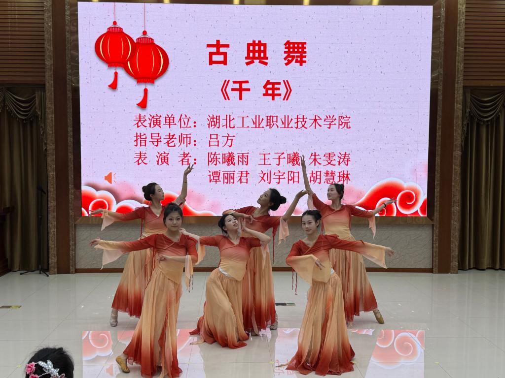 实践首亮相,艺彩润民心。演出现场,我校大学生艺术团呈现了两个精心编排的节目。古典舞《千年》以柔美而恢弘的舞姿,勾勒出中华文明绵延千年的气韵与风华;器乐合奏《兰亭序》则别具创意,融合小提琴的悠扬与电子琴的流转,以中西合璧之声重新诠释经典曲韵。两个节目一古一今、一动一静,既展现出学校美育的扎实成果,也传递出青年一代对中华文化的理解与热爱,为现场观众带来了一场富有感染力的艺术体验。